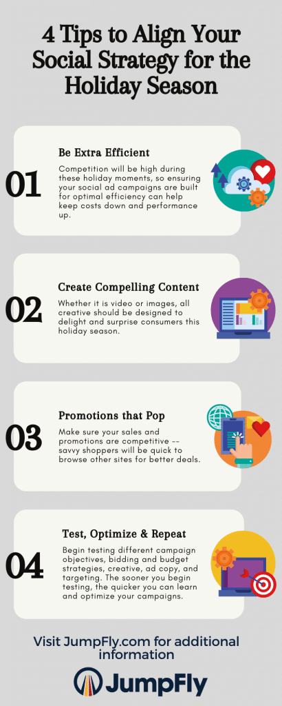 2020 was a year of learning and adapting. Advertisers were tasked with the challenge of finding new strategies to meet business goals — and this will continue well into the 2021 holiday season. Testing and optimization have always been a crucial part of social media marketing. Now more than ever, it is important to begin testing different campaign objectives, bidding/budget strategies, creative, ad copy, and targeting. The sooner you begin testing, the quicker you can learn and optimize your campaigns.