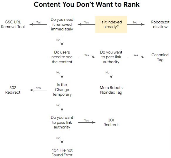 So now you know what each method of content removal does, but you still don’t know when to use them to remove your content. The good news is that we can answer that question by walking through a couple of simple questions. The flow chart below will help, and I’ll explain each step below.