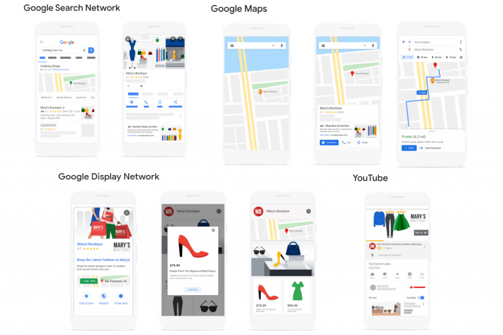 The third benefit of GMB listings to advertisers is the ability to use local campaigns in Google Ads. Local campaigns utilize machine learning to promote offline business goals and maximize in-store value by measuring store visits, call clicks, and direction clicks. With only a few lines of text, some images, and a budget, Google serves these ads across Search, Google Maps, the Google Display Network, and YouTube.
