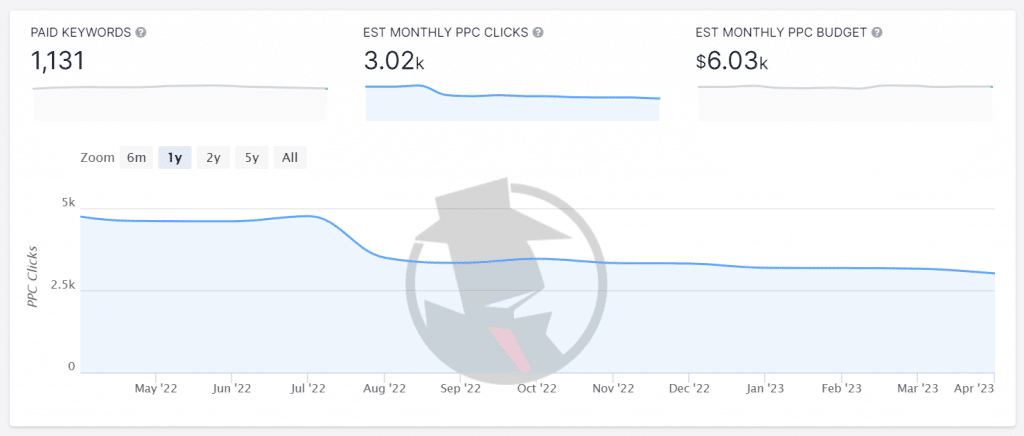 When using the competitive analysis tool, SpyFu, it estimates that our anonymous account gets roughly 3,000 clicks a month with an advertising budget of roughly $6,000 a month. This is illustrated in the “Monthly PPC Overview” table below.