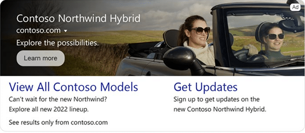 Multimedia Ads are designed to combine your assets like images, headlines, and descriptions with the power of machine-learning technology to deliver your content through attention-grabbing large visual ads. These ads will be prominently featured on the right rail (right side of the search results) or in the mainline at the top of the search results pages. They also allow for greater visibility and some exclusivity as there will be just one Multimedia Ad on a page for only one advertiser at a time.
