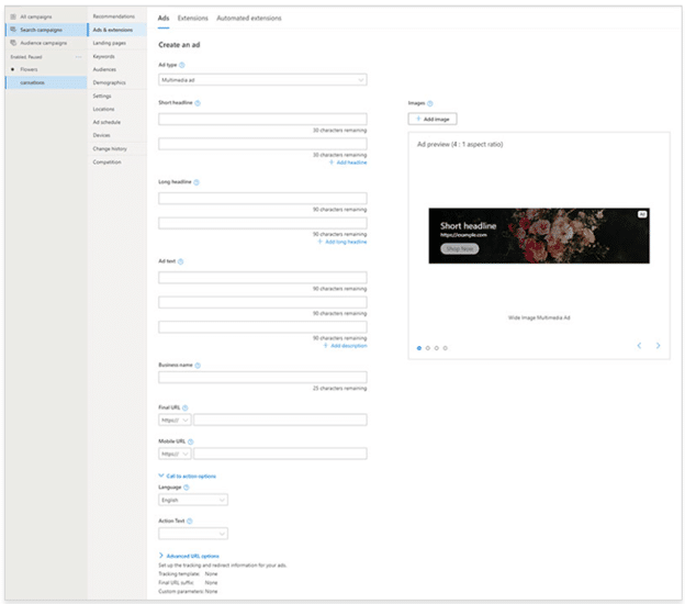 The Multimedia Ads setup process should look very familiar as it closely resembles Responsive Search Ads but with the additional ability to use rich visual assets in combination with text assets. For optimal performance, it is recommended that you upload multiple ad variations of high-quality images in all four aspect ratios: 1.91:1, 1:1, 1:2, and 4:1.