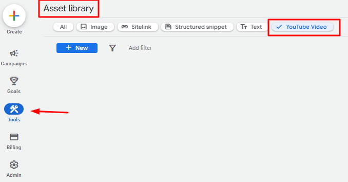 You’ll find the Asset Library under the Tools section in the Google Ads interface.