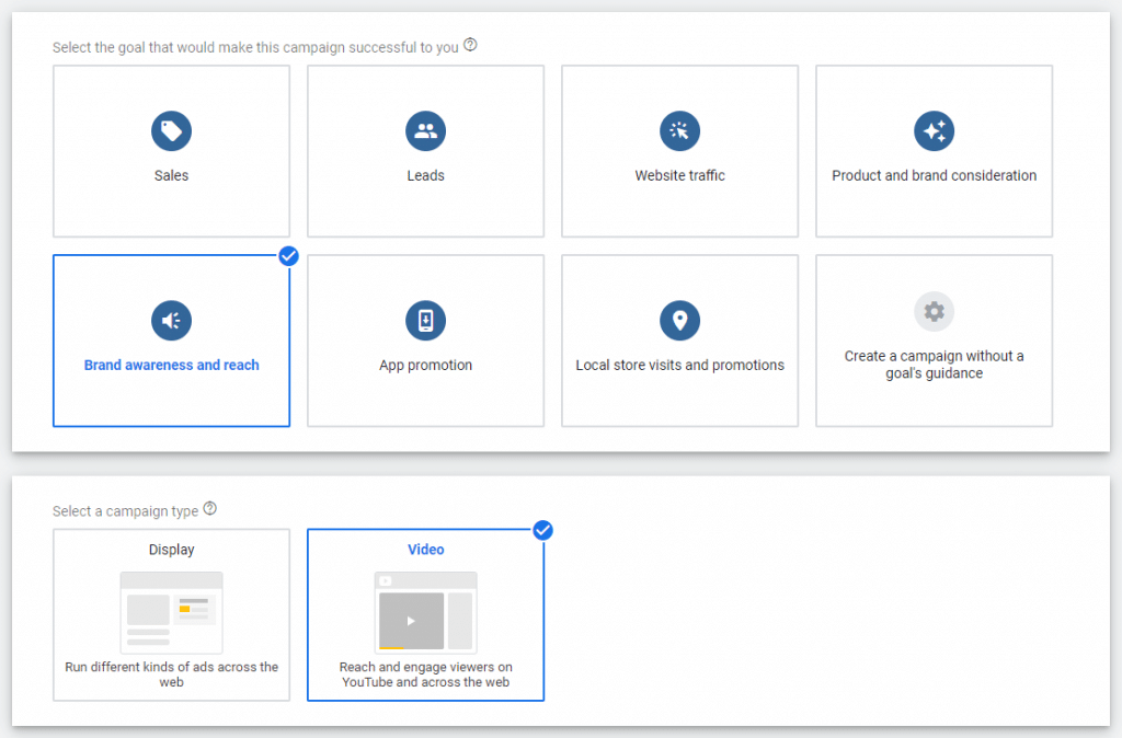 To get started, simply create a new video campaign in Google Ads and select “Brand Awareness and Reach” for your goal.