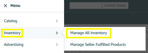 Log in to your Seller Central account, and open the menu on the left-hand side of the page. Select Inventory → Manage All Inventory.