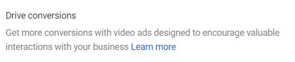 There are many potential Video campaign types to choose from, but selecting one that’s focused entirely on driving website conversions is actually quite simple. Start by creating your campaign and selecting the following options:
