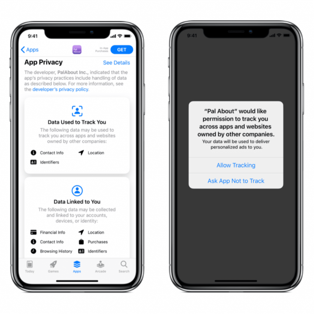 - All applications utilizing the Apple App store are required by the new policy to ask users for permission to track their data across third-party apps and websites. The tracking transparency prompt will appear to the user and give them the ability to accept or decline the tracking of their data, as shown below.