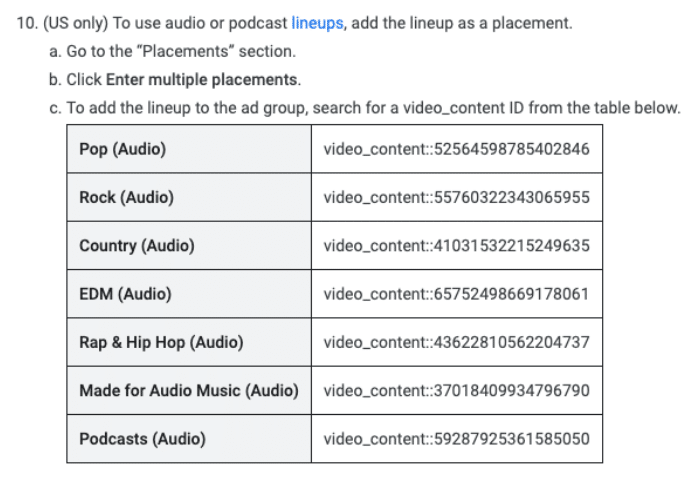 Similar to how placements are used to pick and choose which websites you want display ads to be shown on, United States advertisers using this new ad format are able to target specific genres of music listeners to show their ads. This YouTube placement option gives advertisers the opportunity to refine their ad targeting to certain genres of music as well as podcasts.